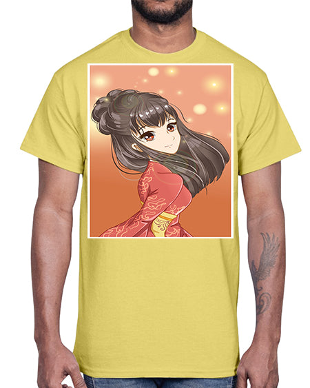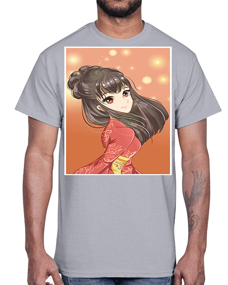 Cute and beautiful girl with red kimono 52#- anime- Cotton Tee