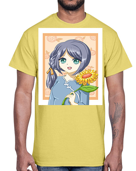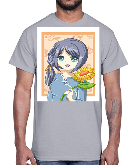 Cute and beautiful girl with sunflower in the summer 165#- anime- Cotton Tee