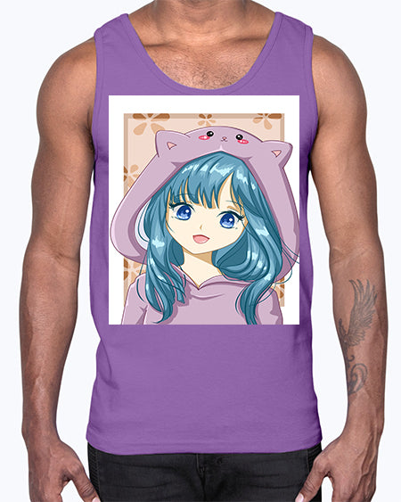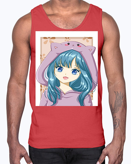 Cute and beautiful girl with cat jacket 107#- anime- Cotton Tank