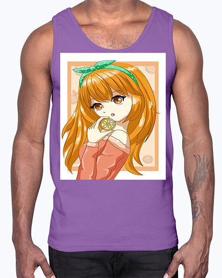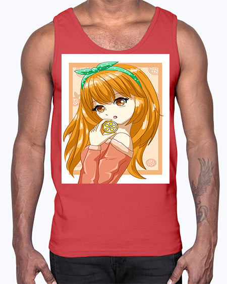 Cute and beautiful girl with orange in the summer 174#- anime- Cotton Tank