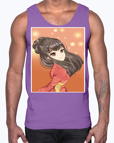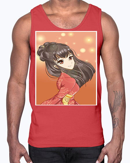 Cute and beautiful girl with red kimono 52#- anime- Cotton Tank