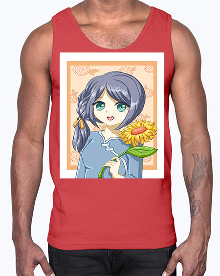 Cute and beautiful girl with sunflower in the summer 165#- anime- Cotton Tank