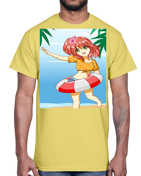 Cute and happy girl in beach with buoy in the summer 184#- anime- Cotton Tee