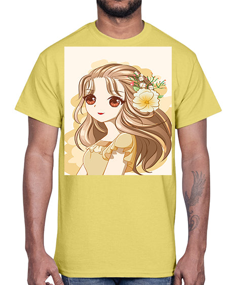 Cute and happy girl with flowers crown 57#- anime- Cotton Tee