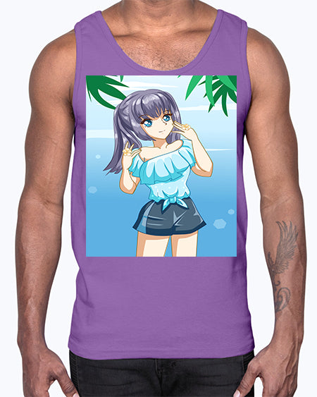 Cute and happy girl with blue shirt in summer 125#- anime- Cotton Tank