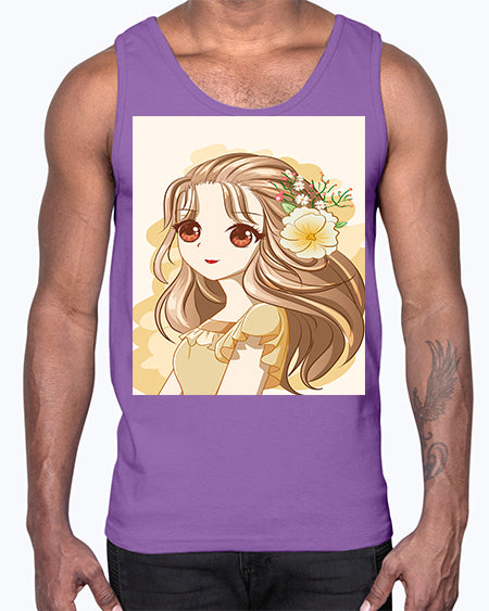 Cute and happy girl with flowers crown 57#- anime- Cotton Tank