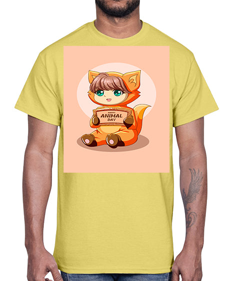 Cute girl with animal costume in animal day text 137#- anime- Cotton Tee