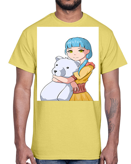 Cute girl with bear doll 26#- anime- Cotton Tee