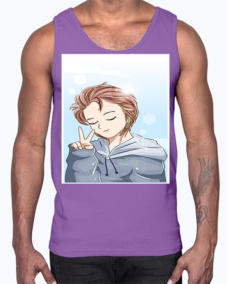 Cute boy brown hair with blue jacket 126#- anime- Cotton Tank