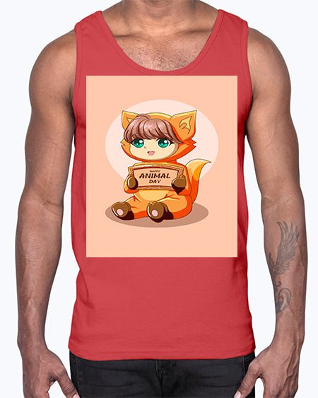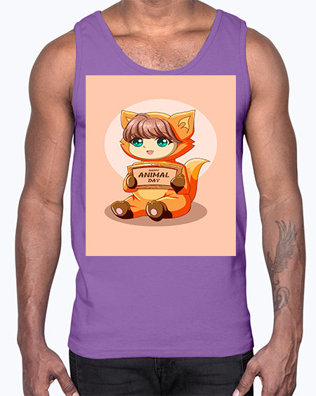 Cute girl with animal costume in animal day text 137#- anime- Cotton Tank