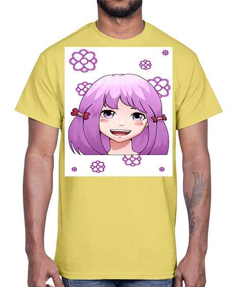 Beautiful and happy girl with hair bangs 92#- anime- Cotton Tee