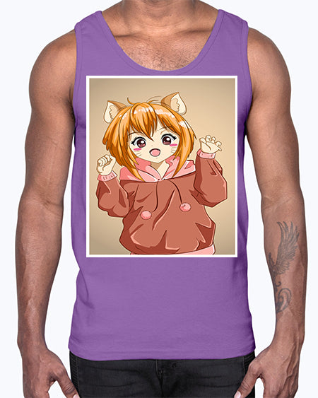 Cute little girl with accessories cat cartoon 170#- anime- Cotton Tank