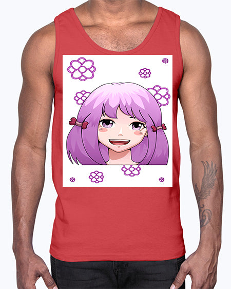 Beautiful and happy girl with hair bangs 92#- anime- Cotton Tank