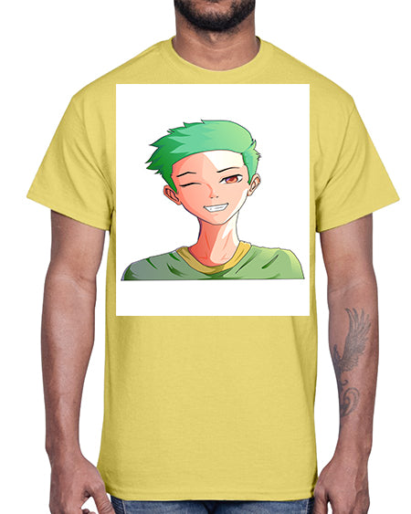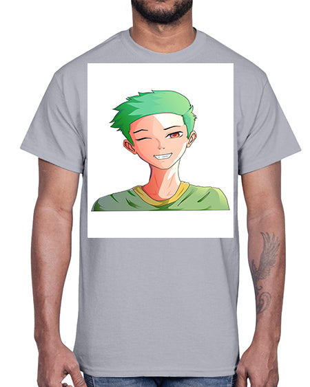 Handsome boy green hair wearing green shirt 35#- anime- Cotton Tee