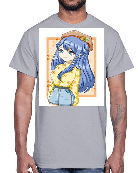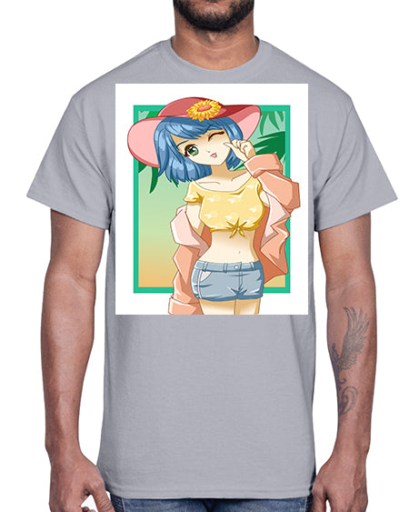 Beautiful and soft girl blue hair in summer 153#- anime- Cotton Tee