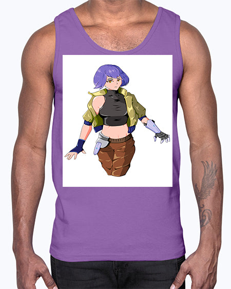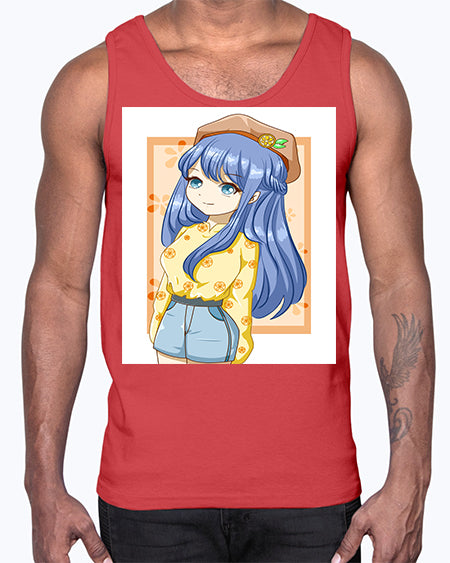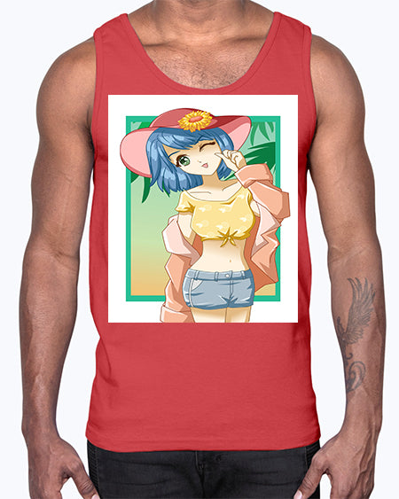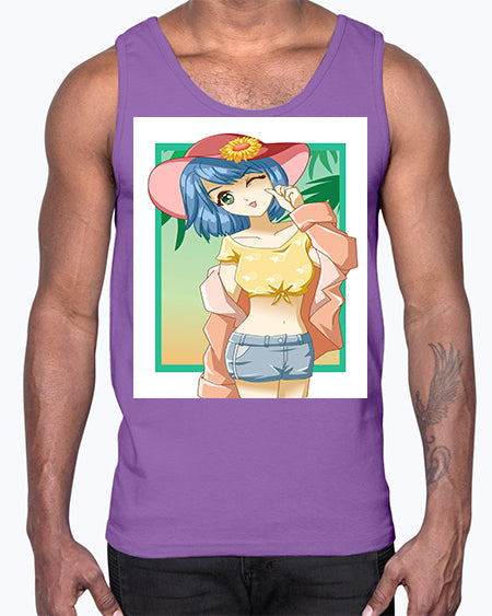 Beautiful and soft girl blue hair in summer 153#- anime- Cotton Tank