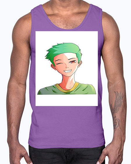 Handsome boy green hair wearing green shirt 35#- anime- Cotton Tank