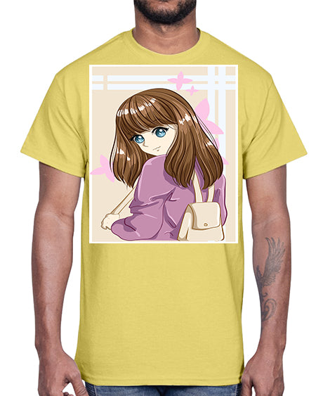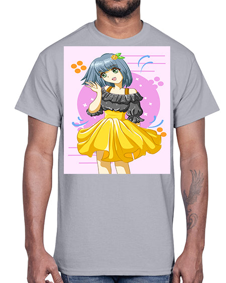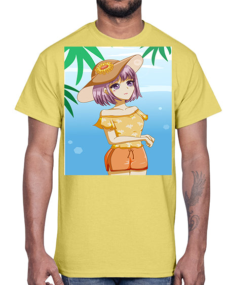 Happy and funny girl with black yellow dress in summer 41#- anime- Cotton Tee