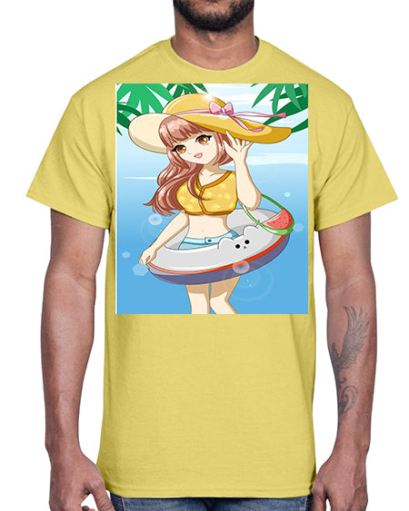 Happy and funny girl in beach with cute buoy in the summer 11#- anime- Cotton Tee