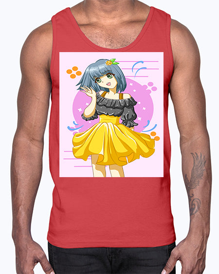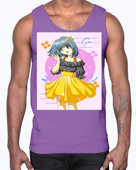 Happy and funny girl with black yellow dress in summer 41#- anime- Cotton Tank