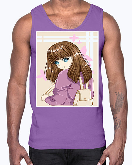 Happy beautiful and cute girl pink long hair 5#- anime- Cotton Tank