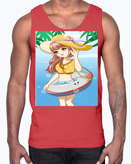 Happy and funny girl in beach with cute buoy in the summer 11#- anime- Cotton Tank