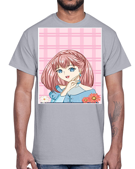 Cute and beautiful princess pink short hair 72#- anime- Cotton Tee