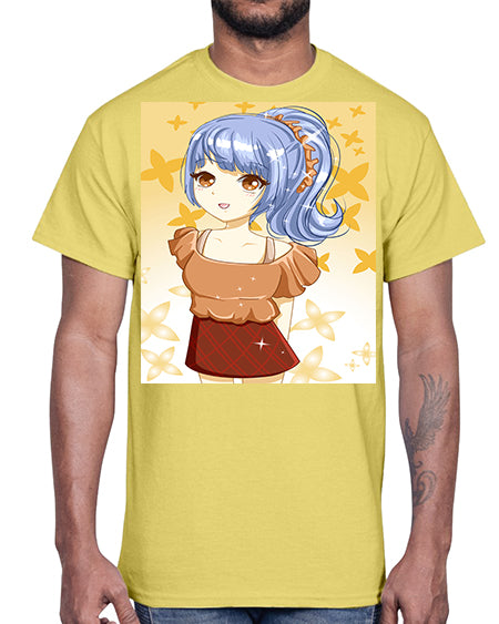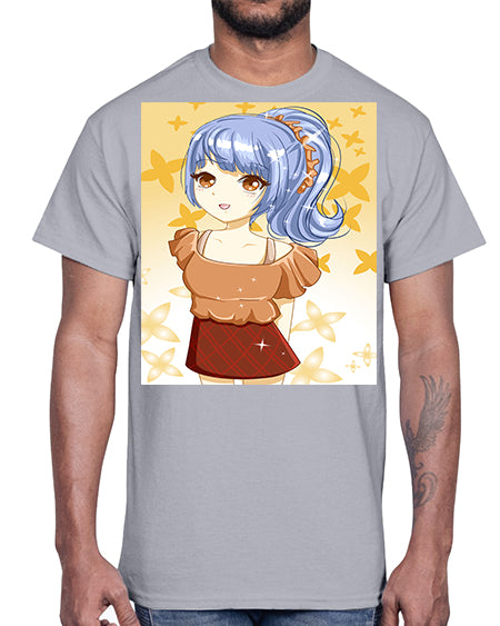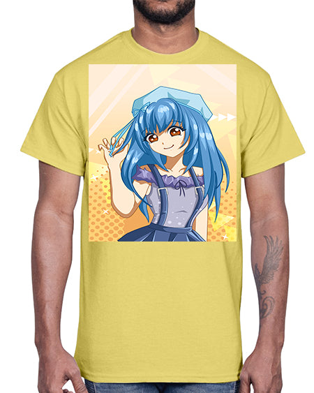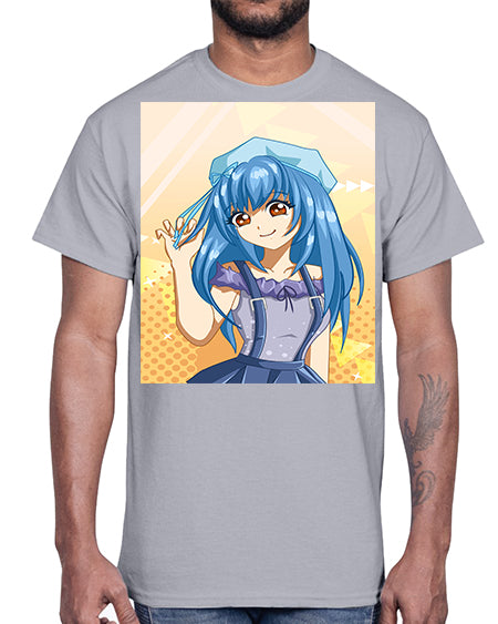 Cute and funny girl with blue hair in purple dress 83#- anime- Cotton Tee
