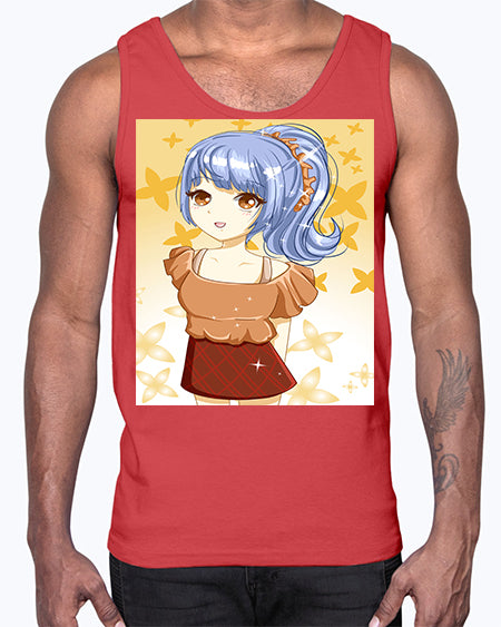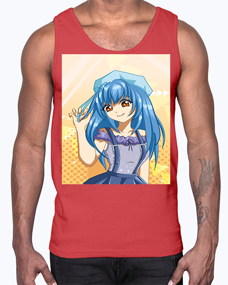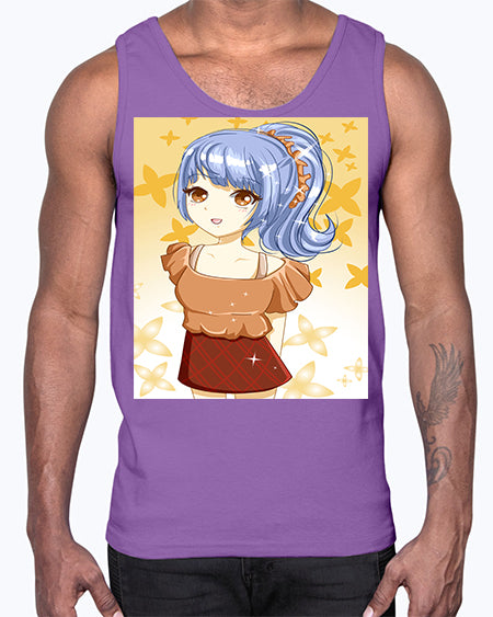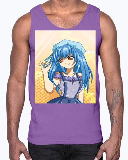 Cute and funny girl with blue hair in purple dress 83#- anime- Cotton Tank