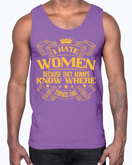 I hate women because they always know where things are Style 57#- womens day- Cotton Tank