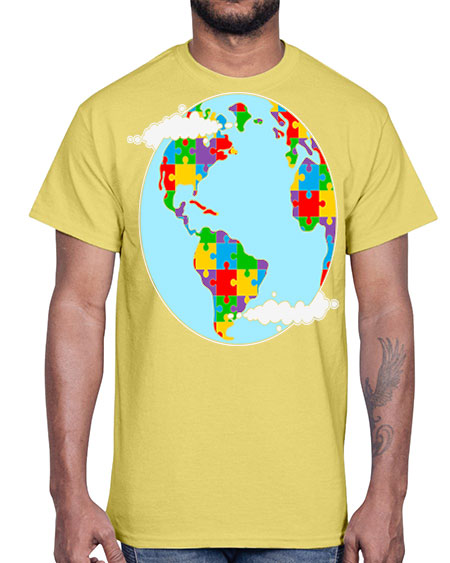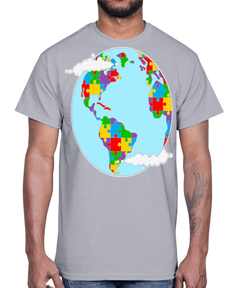 earth autism awareness heart puzzle 83#- autism- Cotton Tee