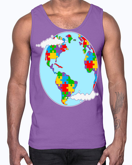 earth autism awareness heart puzzle 83#- autism- Cotton Tank