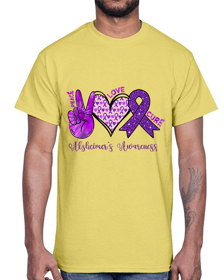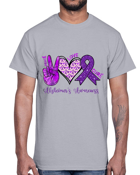 Peace Love Cure Alzheimer Awareness 205#- alzheimers- Cotton Tee