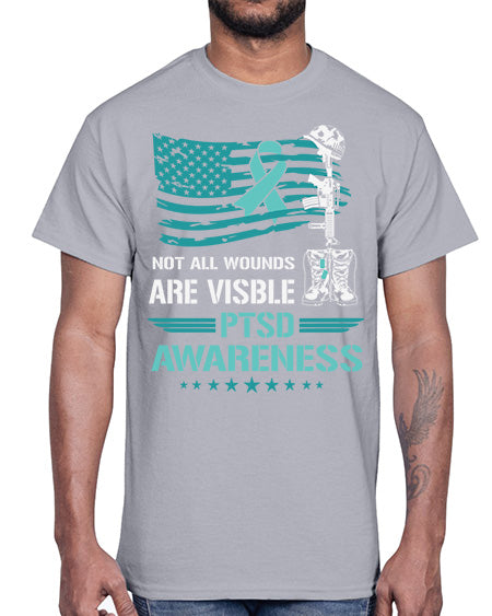 Patriotic Military PTSD Awareness 13#- PTSD- Cotton Tee