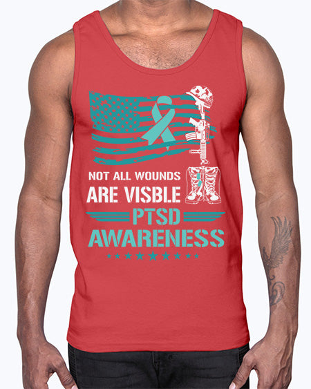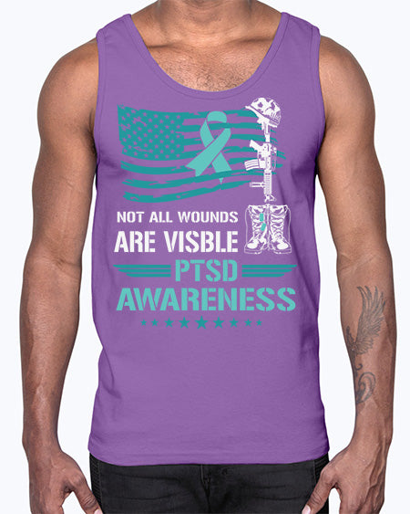 Patriotic Military PTSD Awareness 13#- PTSD- Cotton Tank