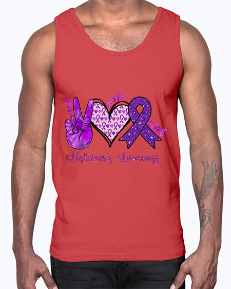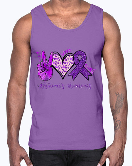 peace love cure alzheimer s awareness 206#- alzheimers- Cotton Tank