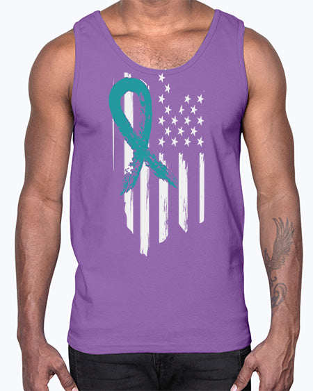 PTSD Teal Ribbon Distressed US 7#- PTSD- Cotton Tank