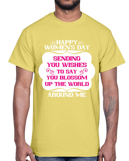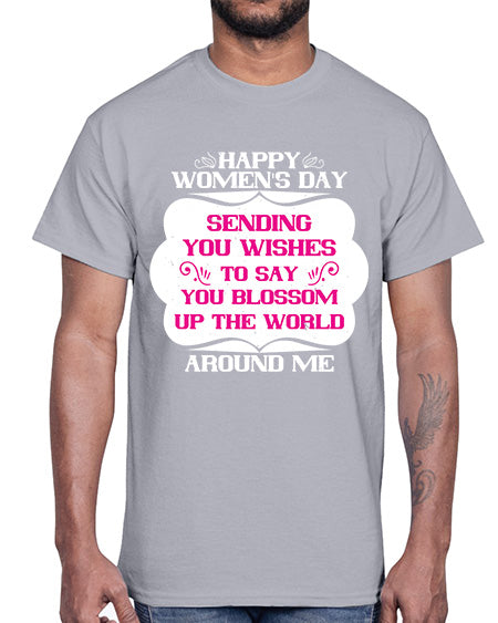 Happy Womens Day Sending you wishes to say you blossom up the world around me Style 69#- womens day- Cotton Tee