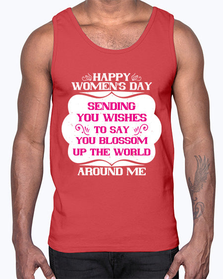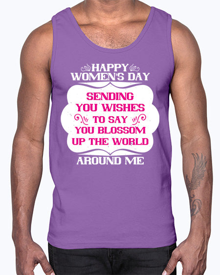 Happy Womens Day Sending you wishes to say you blossom up the world around me Style 69#- womens day- Cotton Tank