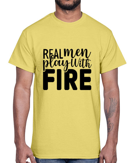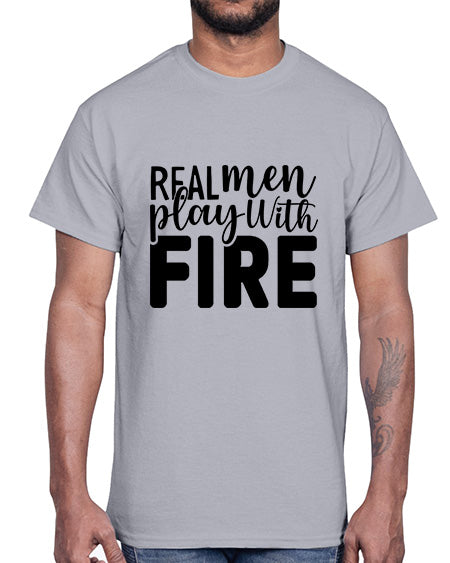 real men playing with fire 1498#- bbq- Cotton Tee