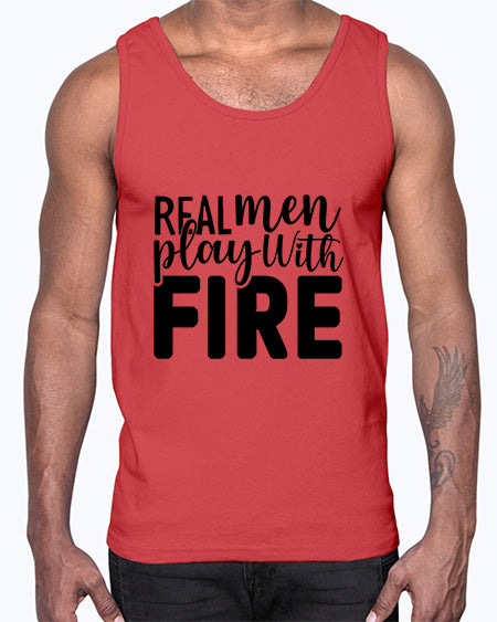 real men playing with fire 1498#- bbq- Cotton Tank