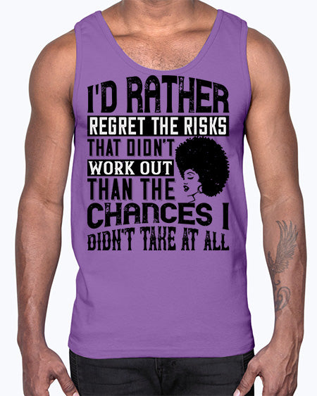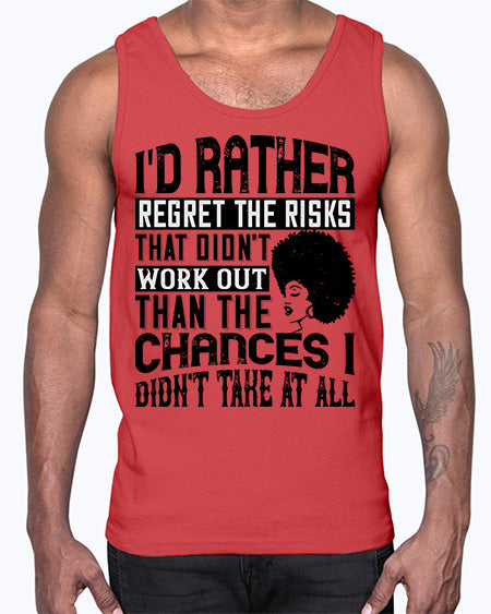 Id rather regret the risks that didnt work out than the chances I didnt take at all Style 23#- black afro- Cotton Tank