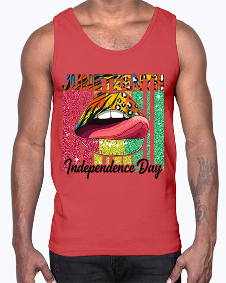 Juneteenth Independence Day Sexy Lip Png 11#- black juneteenth- Cotton Tank