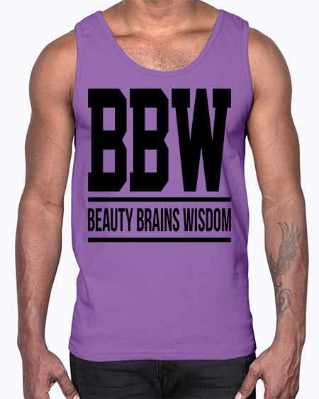 bbw beauty brains wisdom 263#- black words and phrases- Cotton Tank