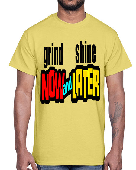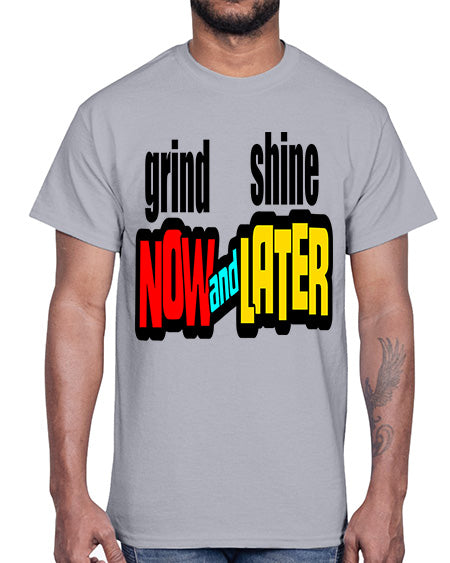 grind now and shine later 142#- black words and phrases- Cotton Tee