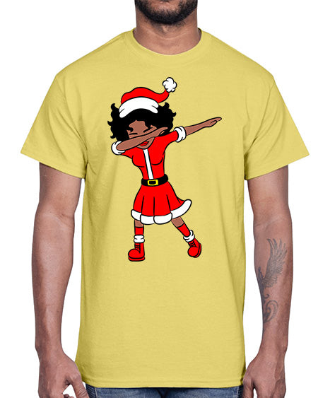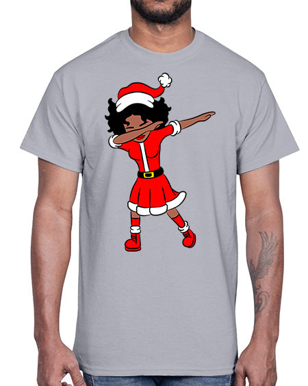 dabbing santa claus afro girl 50#- black girls or women- Cotton Tee