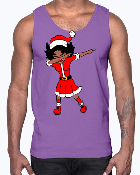 dabbing santa claus afro girl 50#- black girls or women- Cotton Tank