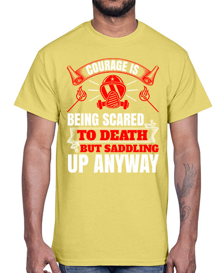 Courage is being scared to death but saddling up anyway Style 680#- fire fighter- Cotton Tee