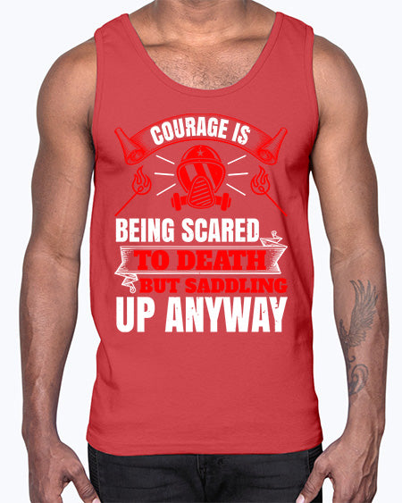 Courage is being scared to death but saddling up anyway Style 680#- fire fighter- Cotton Tank