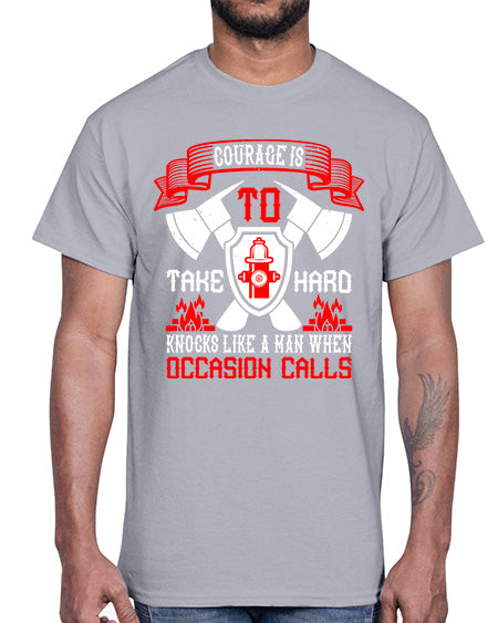 Courage is to take hard knocks like a man when occasion calls Style 681#- fire fighter- Cotton Tee